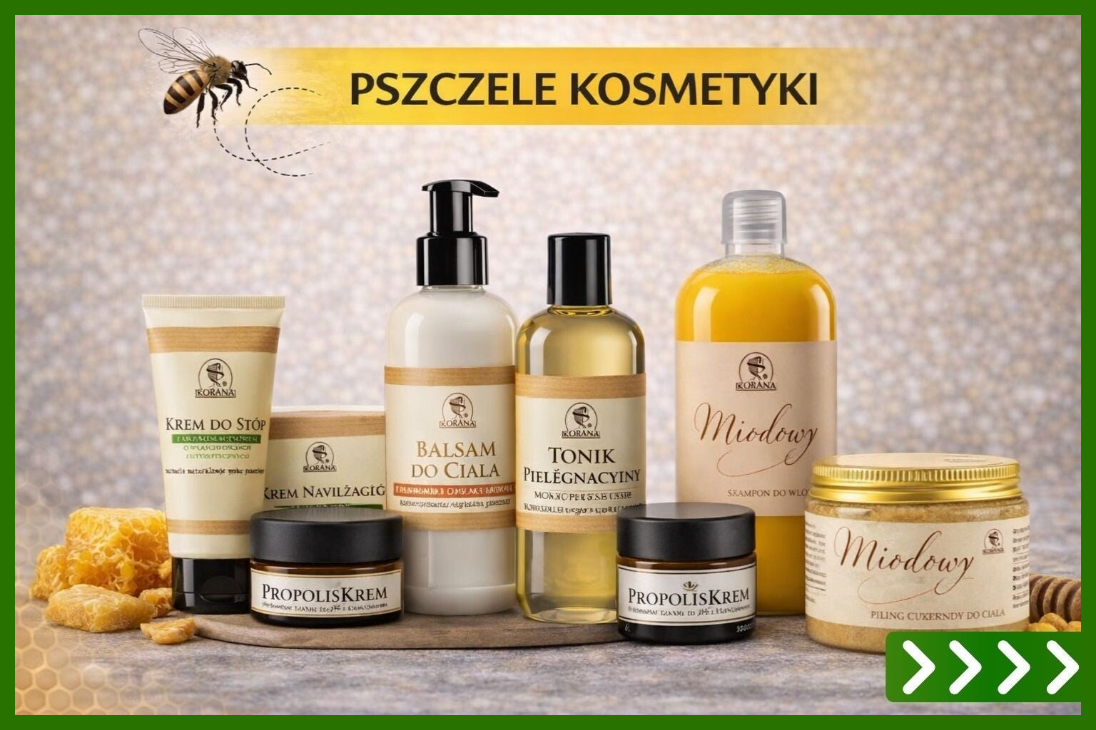 Dzięki współpracy z firmą Korana, jesteśmy w stanie oferować także naturalne kosmetyki w Holandii. Kosmetyki, które oferujemy oparte są głównie na naturalnych składnikach. Kosmetyki z miodem, woskiem pszczelim i propolisem stają się coraz bardziej popularne ze względu na dobre właściwości ich składników oraz konkurencyjną cenę. W naszej ofercie posiadamy również produkty pszczele takie jak: