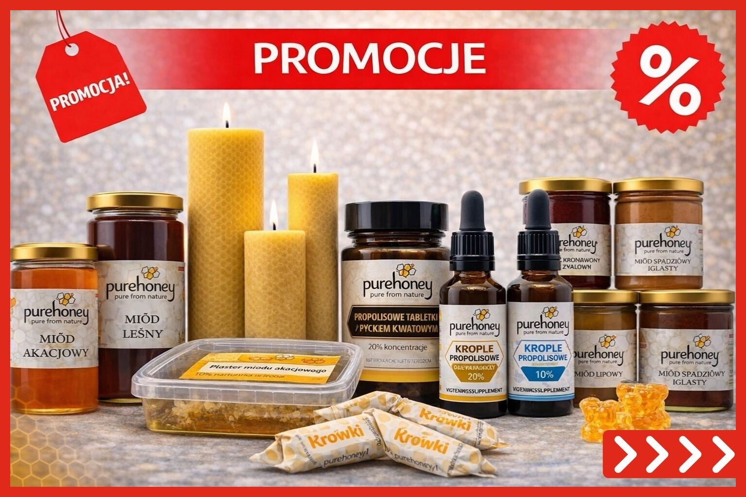 PureHoney.pl to także pierwszy i wyłączny sklep internetowy z kosmetykami w Holandii rodzinnej firmy - Korana. Kosmetyki w Holandii na bazie miodu, wosku pszczelego i propolisu naszej rodzimej polskiej marki. W ofercie posiadamy również naturalne świece z wosku pszczelego oraz idealnie pasujące naturalne świeczniki.